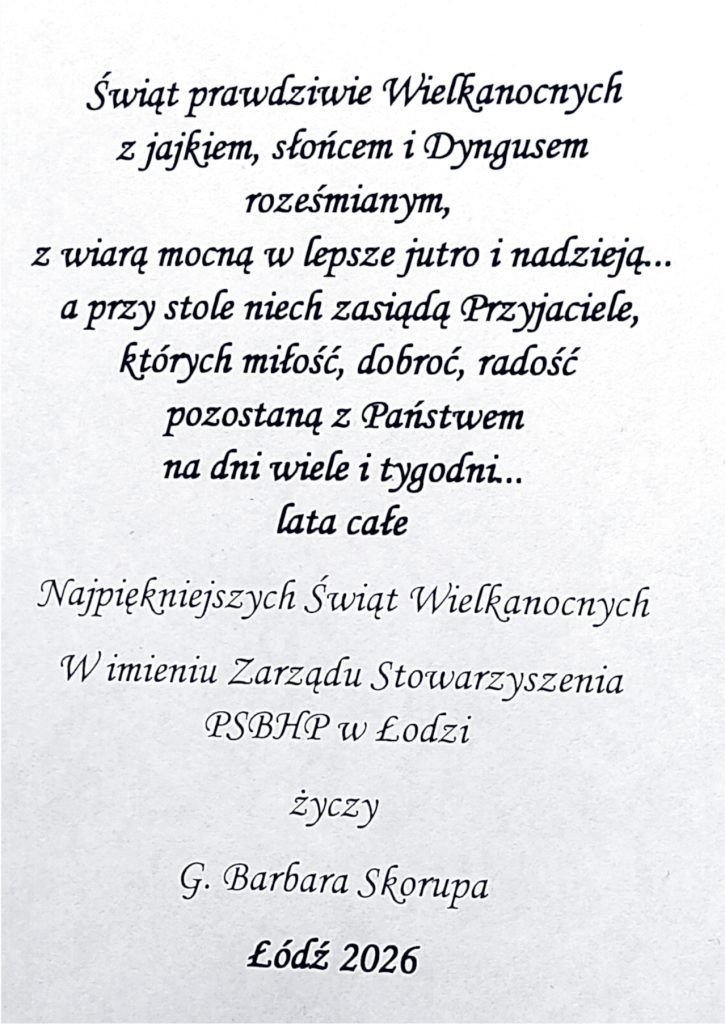 Życzenia Zarządu Stowarzyszenia PSBHP w Łodzi